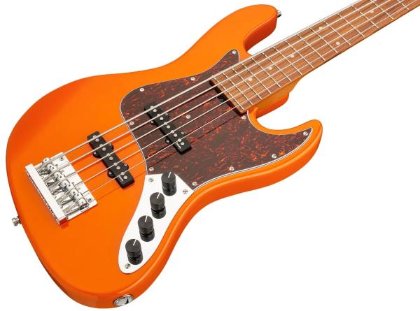All features of this modern bass sound can also be found in the SADOWSKY MetroExpress 21-Fret Vintage J/J Bass 5-String (SMX21VJ5 J1R OKU FR) solid body electric bass.