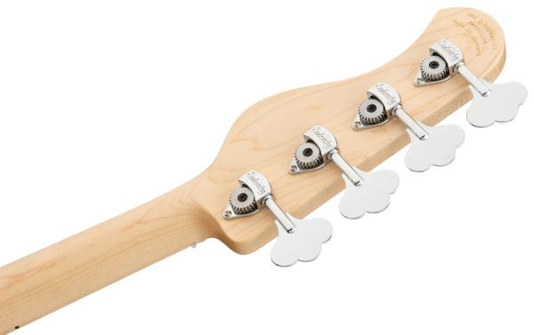 This 4-string bass has a chambered Swamp Ash body. The body shape is sleek and undersized with deeper cutaways for better playability and a full two octave note range. The neck is made from American Maple and has an American Maple fretboard with 24 nickel silver frets.