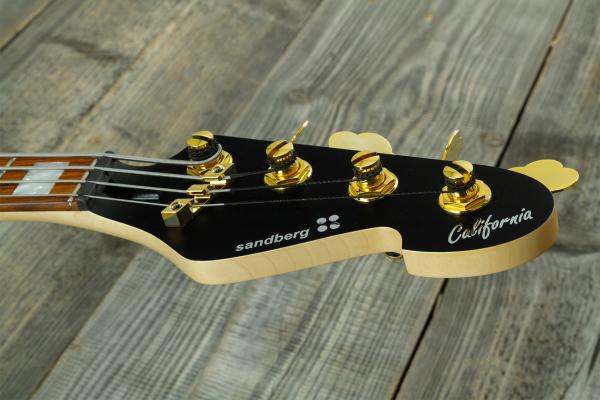 Built in Germany, the SANDBERG California TM4 SL Superlight (PF, Block Inlays White Pearl, Gold Hardware, Highgloss Black) is a fantastic solid body electric bass merging influences from the classics Fender© Jazz Bass© and Music Man© Stingray©.