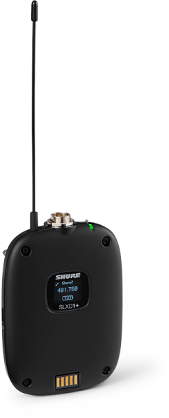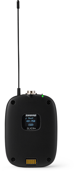 The SLXD1+ bodypack transmitter is lightweight thanks to its ABS housing and features a 4-pin mini XLR connector compatible with Shure lavalier, ear-loop, and headset microphones.