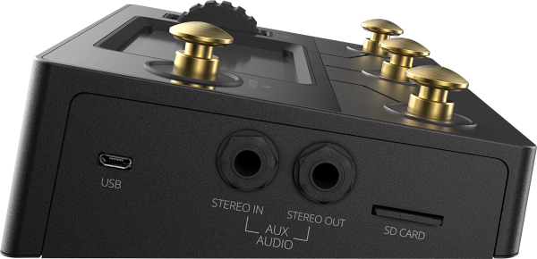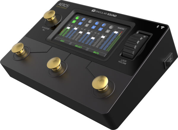 Thanks to its compact dimensions and light weight, the Aeros gold can be easily installed on any pedalboard to create loops with your favorite pedal configurations. The looper also boasts full connectivity, with numerous inputs and outputs designed to suit your playing style. Wifi and Bluetooth are also provided for updates via mobile devices. MIDI inputs and outputs are also provided for synchronizing the looper with the BeatBuddy, or any other compatible effects pedal. Stereo auxiliary inputs and outputs further enhance the usability of this exceptional looper.