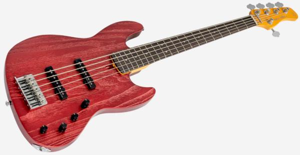 SIRE MARCUS MILLER V6 5-String (Candy Apple Red) solid body electric bass with active/passive preamp, is equipped with Swamp Ash body, a wood of unusual quality at this price level !