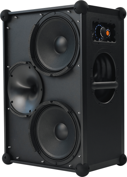It features two 10" drivers coupled to a 1" compression driver, and is designed to withstand liquid splashes.