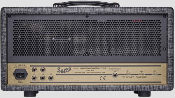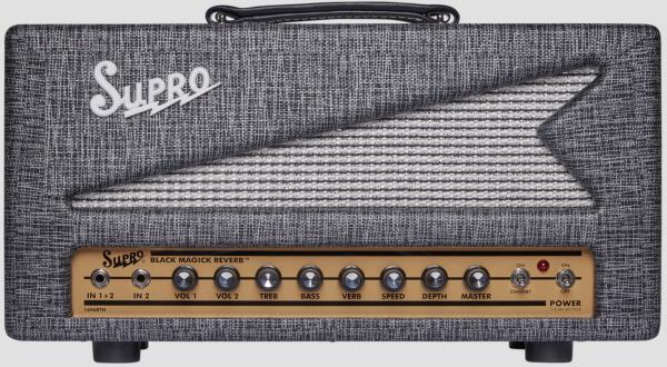 The SUPRO Legend Series 1696RTH Black Magick Reverb Head embodies the all-tube snarl and sweetness that define the Supro sound. Featuring analog spring reverb, 2-band EQ, and a master volume knob, the Black Magick Reverb was designed with maximum flexibility in mind. Two independent preamp channels can be linked together using the "1 + 2" input jack to obtain fat tone, while utilizing only Input 2 will yield a more agile sound. The Black Magick Reverb’s 3-spring reverb pan is driven by both channels and then summed with the dry signal just before the master volume control. An updated, tube-based LFO circuit provides bias-modulated output tube tremolo with double the speed range of the original Black Magick. Also available in combo format.