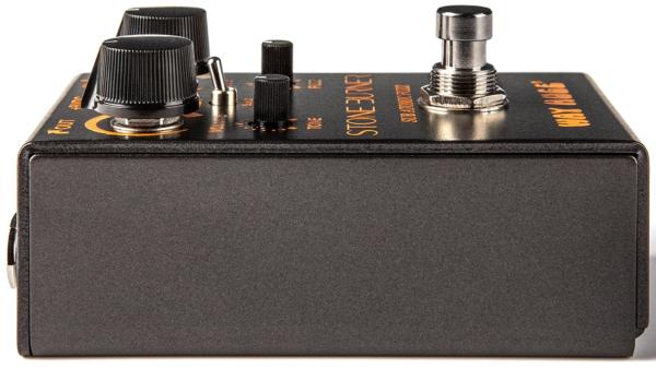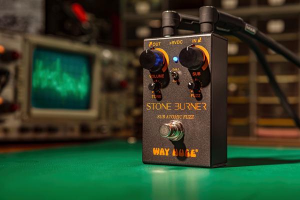The WAY HUGE Smalls Stone Burner Sub Atomic Fuzz WM81 will put you in touch with your freaky side. It’ll have you threatening the world with searing fuzz in one moment and generating earth-shaking low end in the next. It’ll unleash sonic blasts that roar at the heavens like pillars of terra-cotta glow that hide the stars... The fuzz and sub octave signals each have their own level knobs so that you can mix the two to your own twisted taste. The Sub 1/Sub 2 switch lets you choose just how low your dirty deeds can go. Volume and Tone controls round out this pedal’s insidious interface.