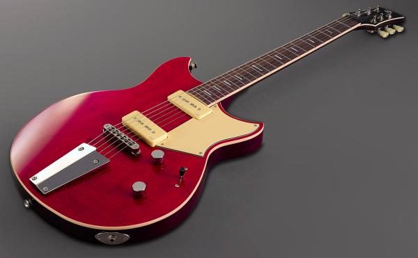 YAMAHA Revstar Standard RSS02T (Fire Red) is a chambered solid body electric guitar, featuring a Mahogany body, Maple top, a three pieces Mahogany set-neck with 22 stainless steel frets Rosewood fretboard (scale 24.75"), AlNiCo V P90 style single coil pickups and tone pot with push-pull "Focus Switch" which activates a passive boost with an effect similar to overwound pickups — darker highs, increased mids and lows, and an aggressive character.