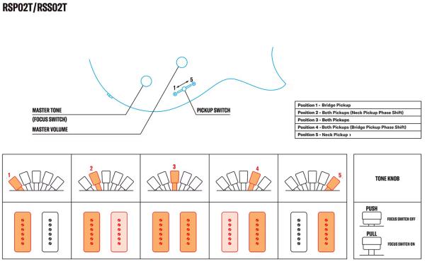 - 5-way pickup switch (positions 2 and 4 slightly delay the opposite pickup for a subtle phase shift that offers a fresh take on classic “in-between” sounds)