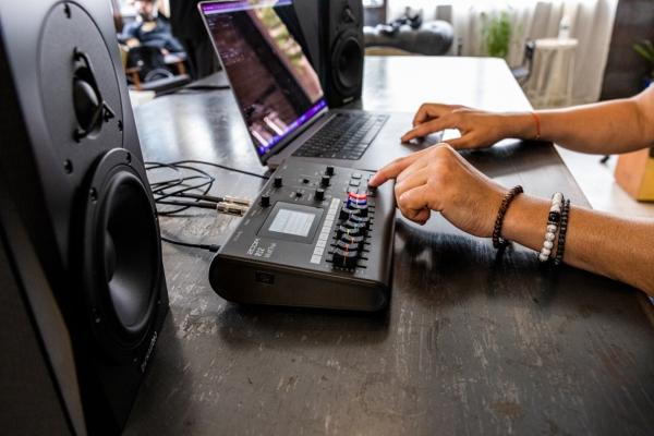Another major advantage is its internal FM synthesizer, offering 18 sounds, fully editable via the touchscreen. It can also be played from a USB-C connected MIDI keyboard, allowing you to compose melodic and harmonic parts directly within your recorder. And thanks to its battery operation (up to 5 hours of battery life), AC power, or USB power, the R12 goes wherever you go, without limitations.